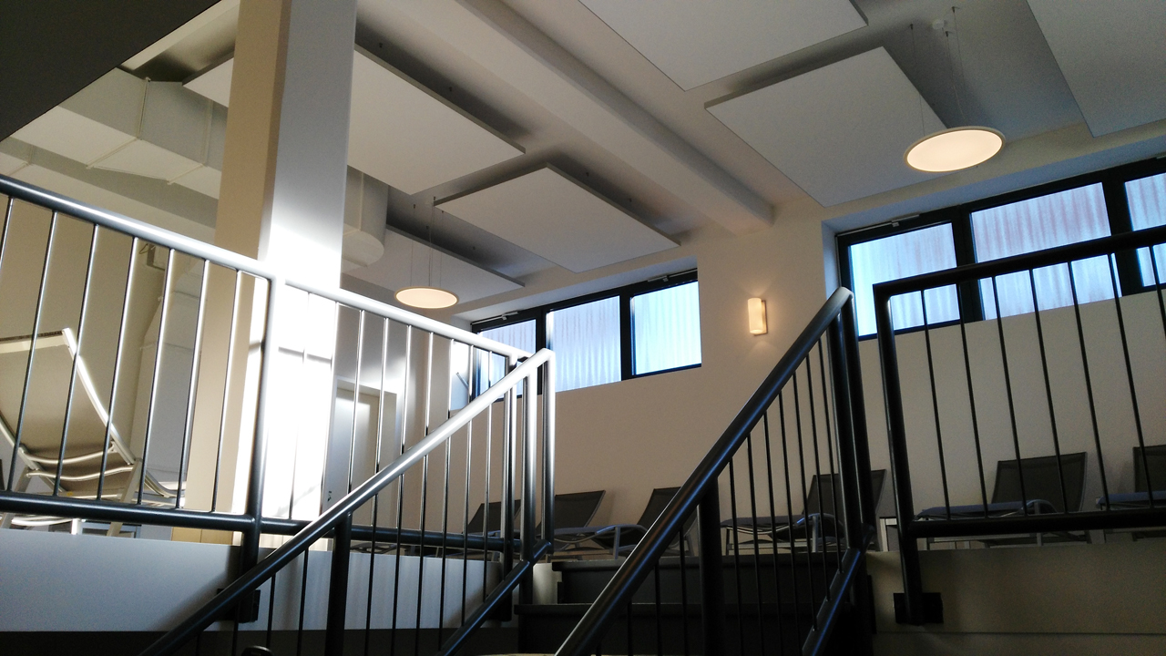 Durch das extrem niedrige Raumgewicht bei hoher Eigenstabilität lässt es sich als selbsttragendes Deckensegel einsetzen – mit exzellenter Schallabsorptionsklasse A. So wird Akustik zum gestalterischen Element.