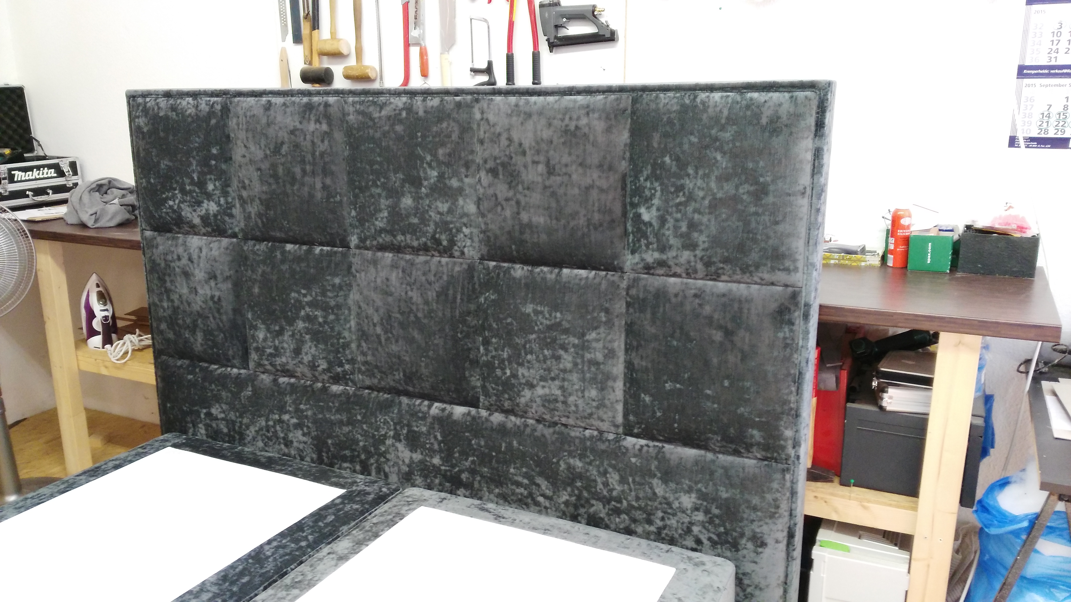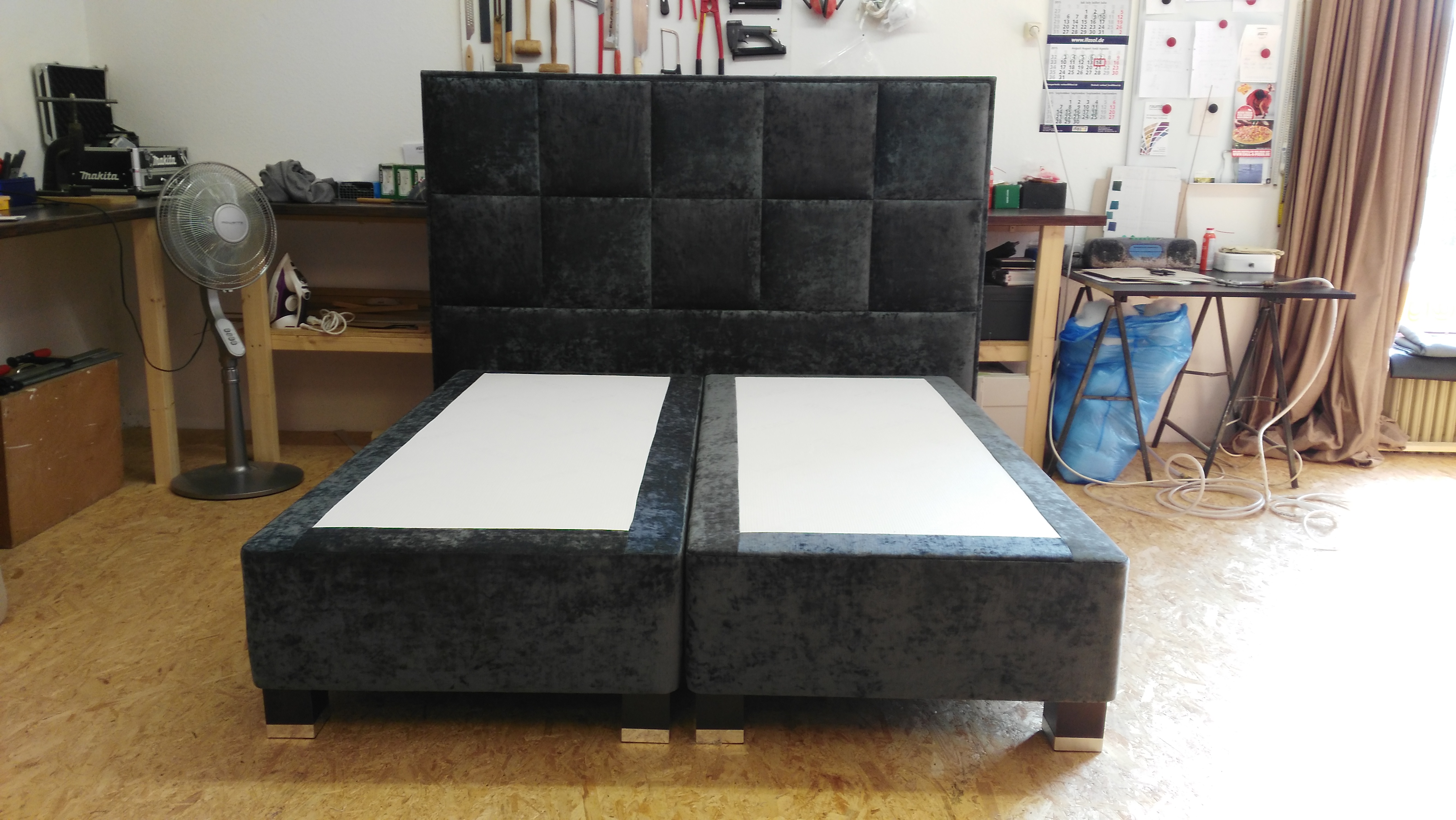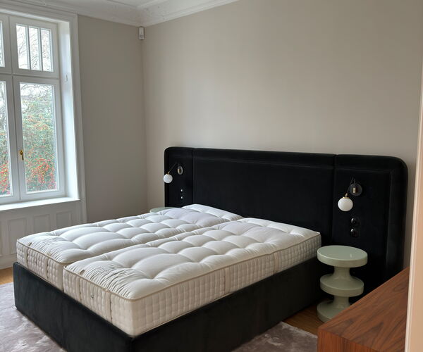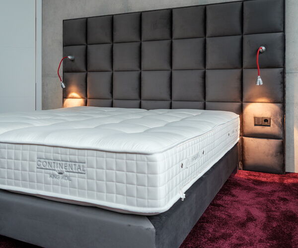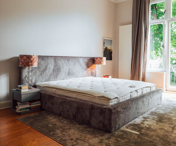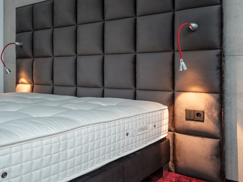 Boxspringbetten brauchen ein großes, stimmiges Kopfteil. Wir fertigen es in der Größe, Form und Polsterung Ihrer Wahl – kapitoniert in Heftung gelegt, glatt bezogen oder mit individueller Steppung.
