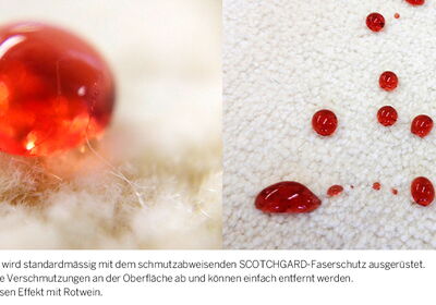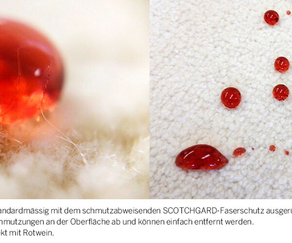 Hinter dem samtigen Griff steckt eine neue Fasertechnologie, die Weichheit und Glanz mit Strapazierfähigkeit und Pflegeleichtigkeit verbindet. Serienmäßig ausgestattet mit dem schmutzabweisenden Scotchgard-Faserschutz perlen Flüssigkeiten an der Oberfläche ab und lassen sich einfach entfernen.