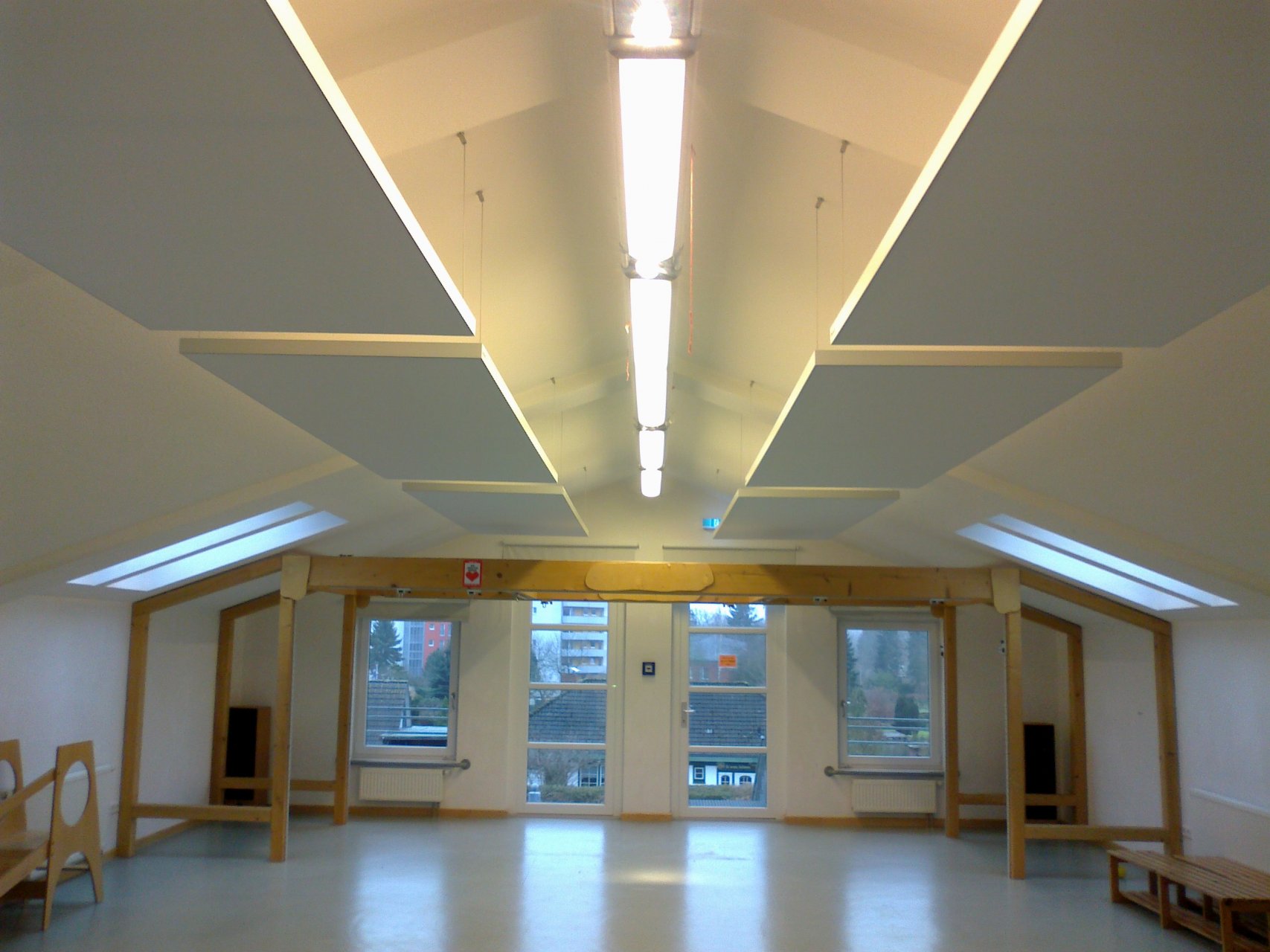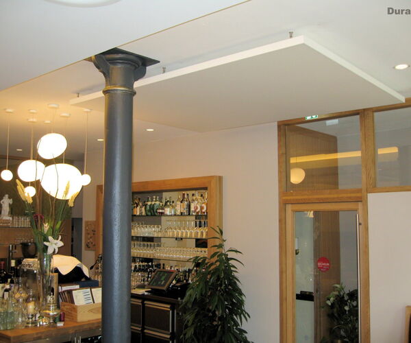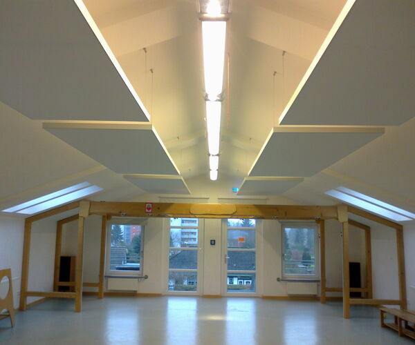 Durch das extrem niedrige Raumgewicht bei hoher Eigenstabilität lässt es sich als selbsttragendes Deckensegel einsetzen – mit exzellenter Schallabsorptionsklasse A. So wird Akustik zum gestalterischen Element.
