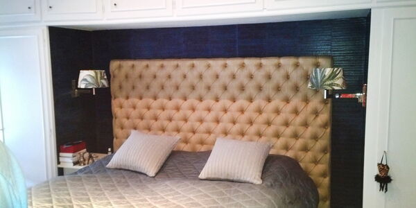 Boxspringbetten brauchen ein großes, stimmiges Kopfteil. Wir fertigen es in der Größe, Form und Polsterung Ihrer Wahl – kapitoniert in Heftung gelegt, glatt bezogen oder mit individueller Steppung.